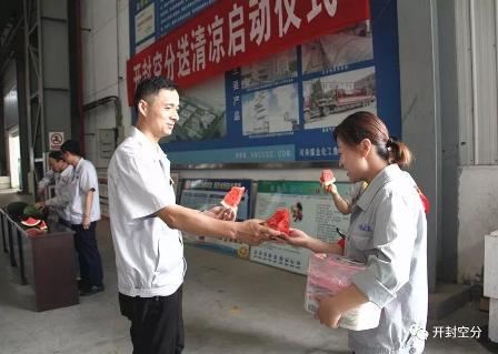 在空分設備廠車間內,曹小毛、王志峰、張石芳為各基層工會送上了小藥箱,把切好的西瓜送到工人師傅們手中。“天氣炎熱,大家多注意身體。”“來,吃塊西瓜降降溫吧!”……豐富的藥箱,清涼的西瓜,溫馨的叮囑,讓奮戰在一線的干部職工們切身感受到了公司的殷切關懷。大家紛紛表示,要立足崗位,不忘初心,牢記使命,為公司年度生產任務目標實現做貢獻。