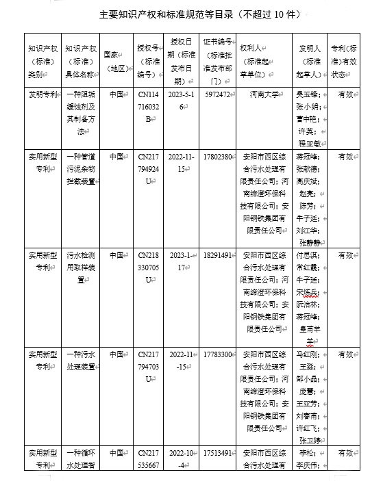 主要知識產權和標準規范等目錄(不超過10件)